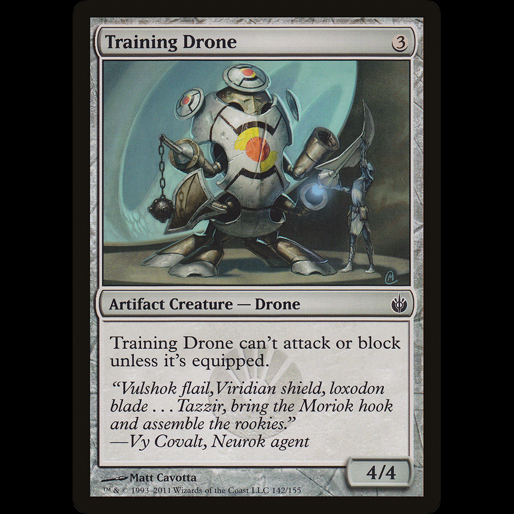 MTG Training Drone Mirrodin BesiegedTraining Drone can't attack or block unless it's equipped.