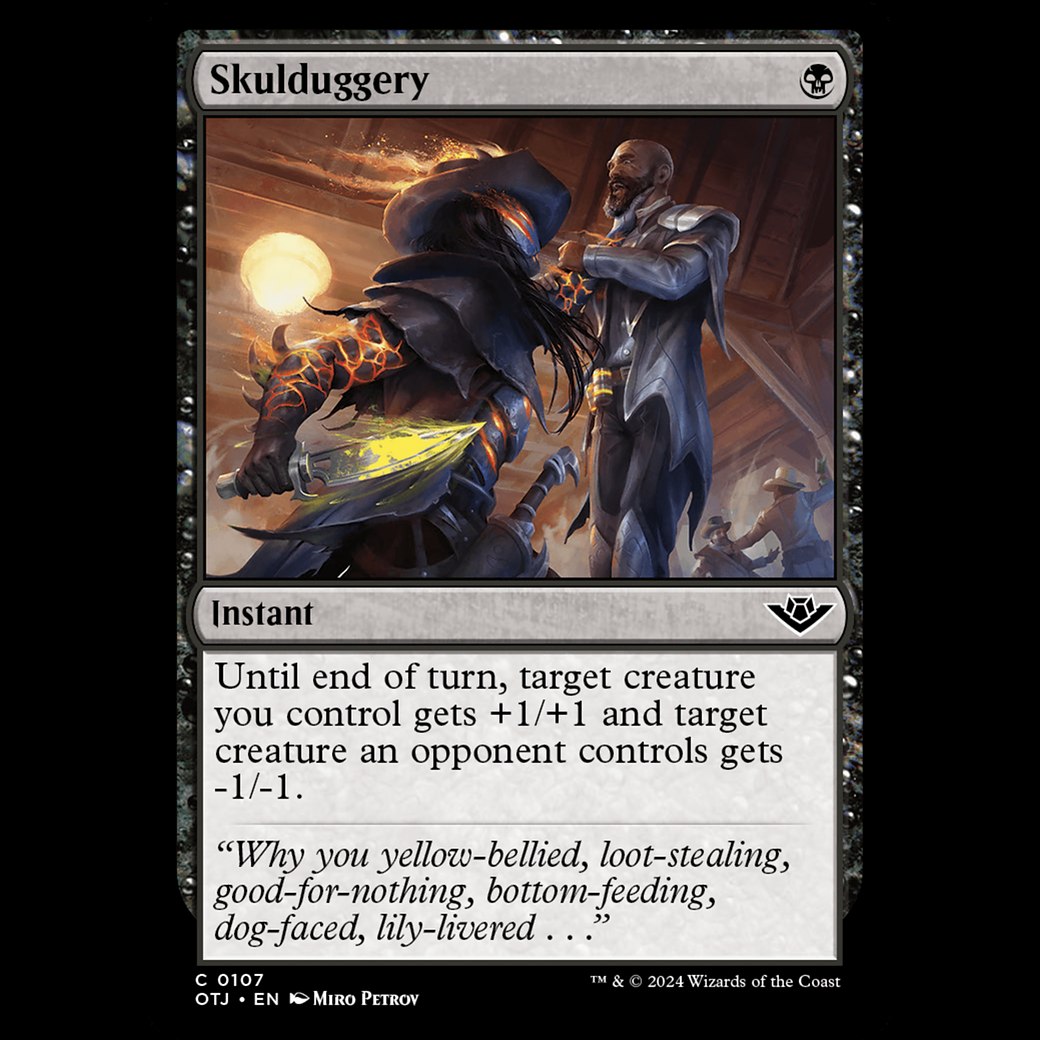 MTG Trampa oculta (Skulduggery) Outlaws of Thunder Junction otj#107 Until end of turn, target creature you control gets +1/+1 and target creature an opponent controls gets -1/-1.