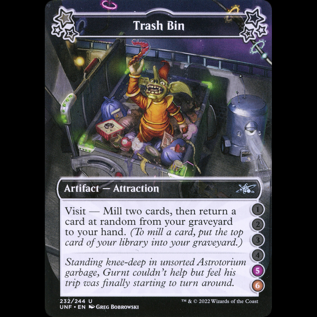 Visit — Mill two cards, then return a card at random from your graveyard to your hand. (To mill a card, a player puts the top card of their library into their graveyard.)