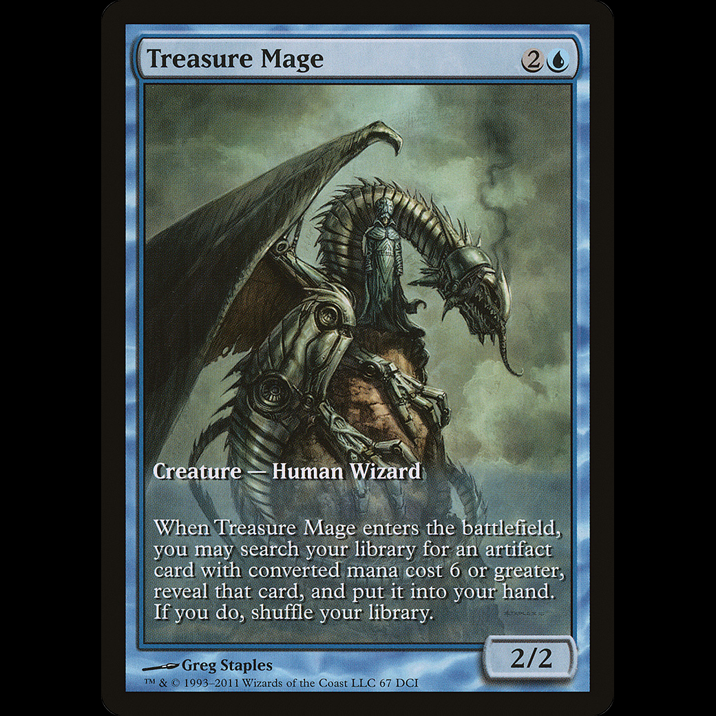 When Treasure Mage enters the battlefield, you may search your library for an artifact card with mana value 6 or greater, reveal it, put it into your hand, then shuffle.