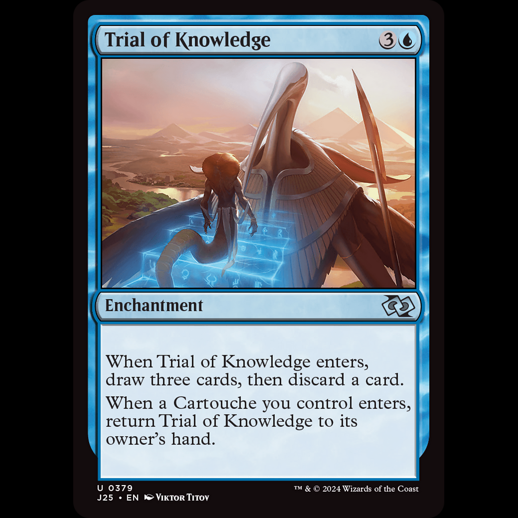 When Trial of Knowledge enters, draw three cards, then discard a card.