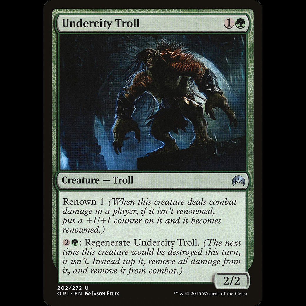 : Regenerate Undercity Troll. (The next time this creature would be destroyed this turn, it isn't. Instead tap it, remove all damage from it, and remove it from combat.)