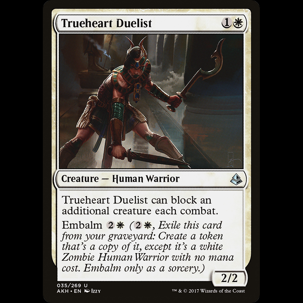 Embalm (, Exile this card from your graveyard: Create a token that's a copy of it, except it's a white Zombie Human Warrior with no mana cost. Embalm only as a sorcery.)