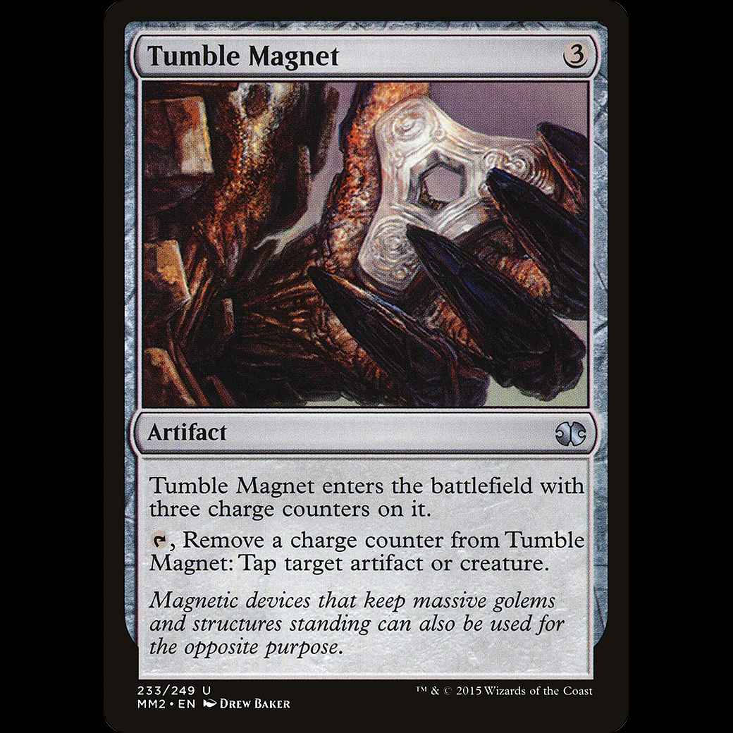 Tumble Magnet enters the battlefield with three charge counters on it.