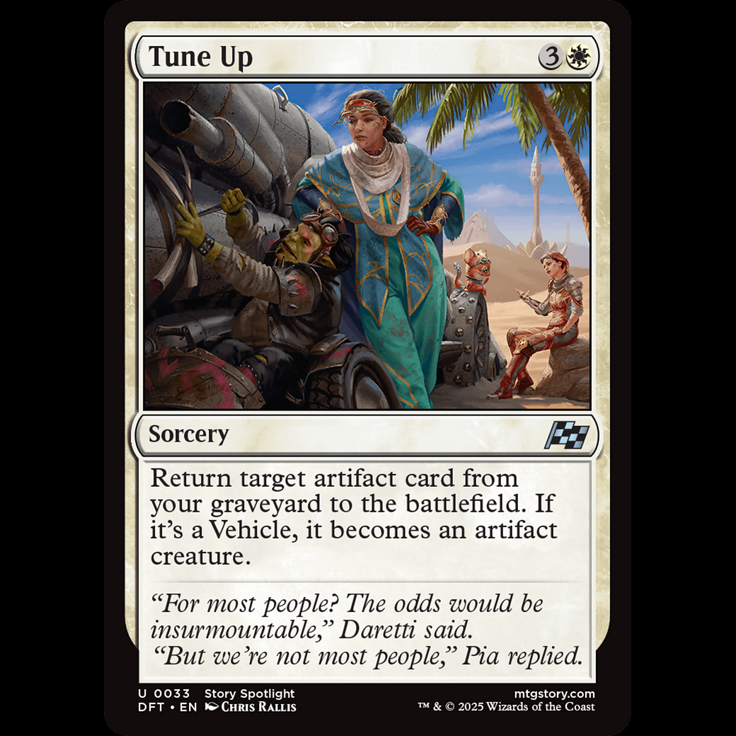 Return target artifact card from your graveyard to the battlefield. If it's a Vehicle, it becomes an artifact creature.