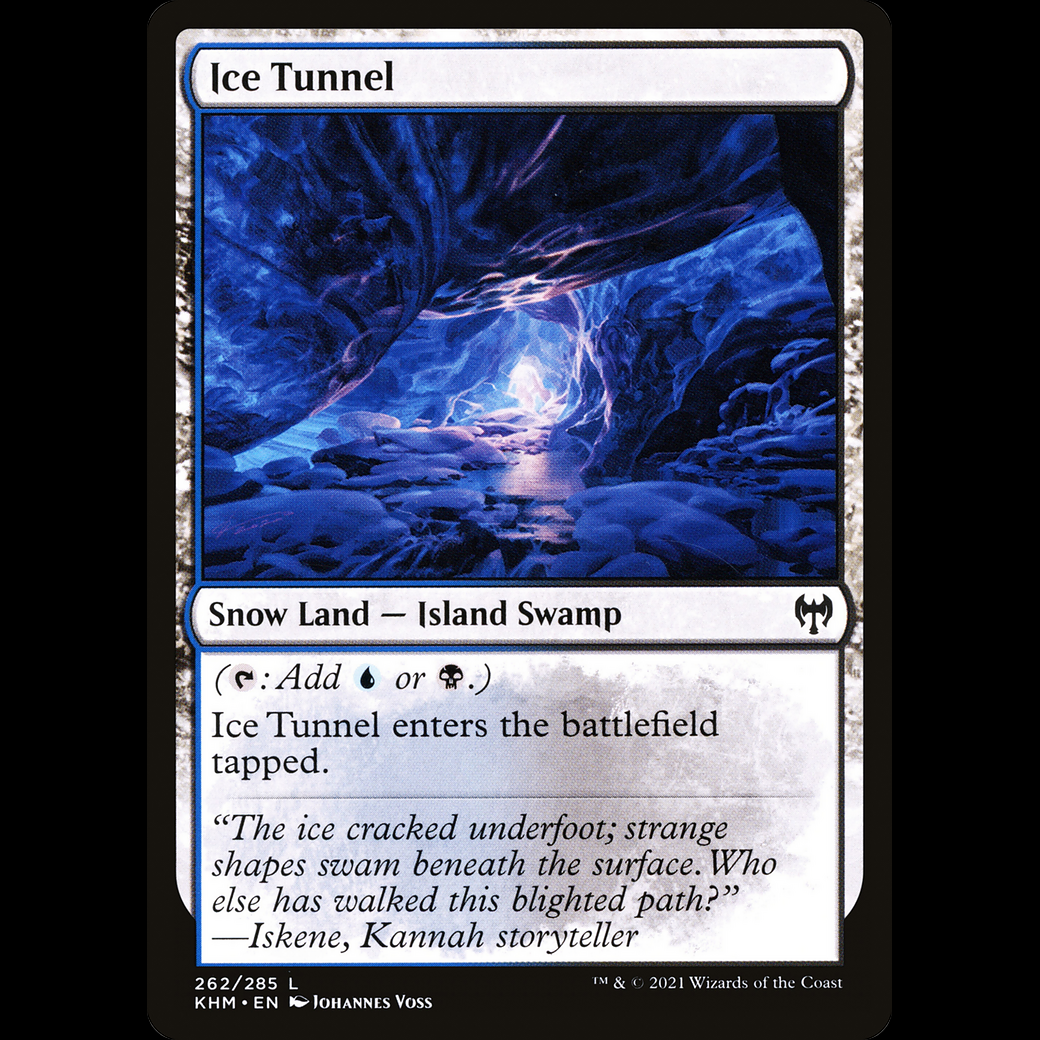 MTG Túnel de hielo (Ice Tunnel) Kaldheim khm#262(: Add or .) This land enters tapped.