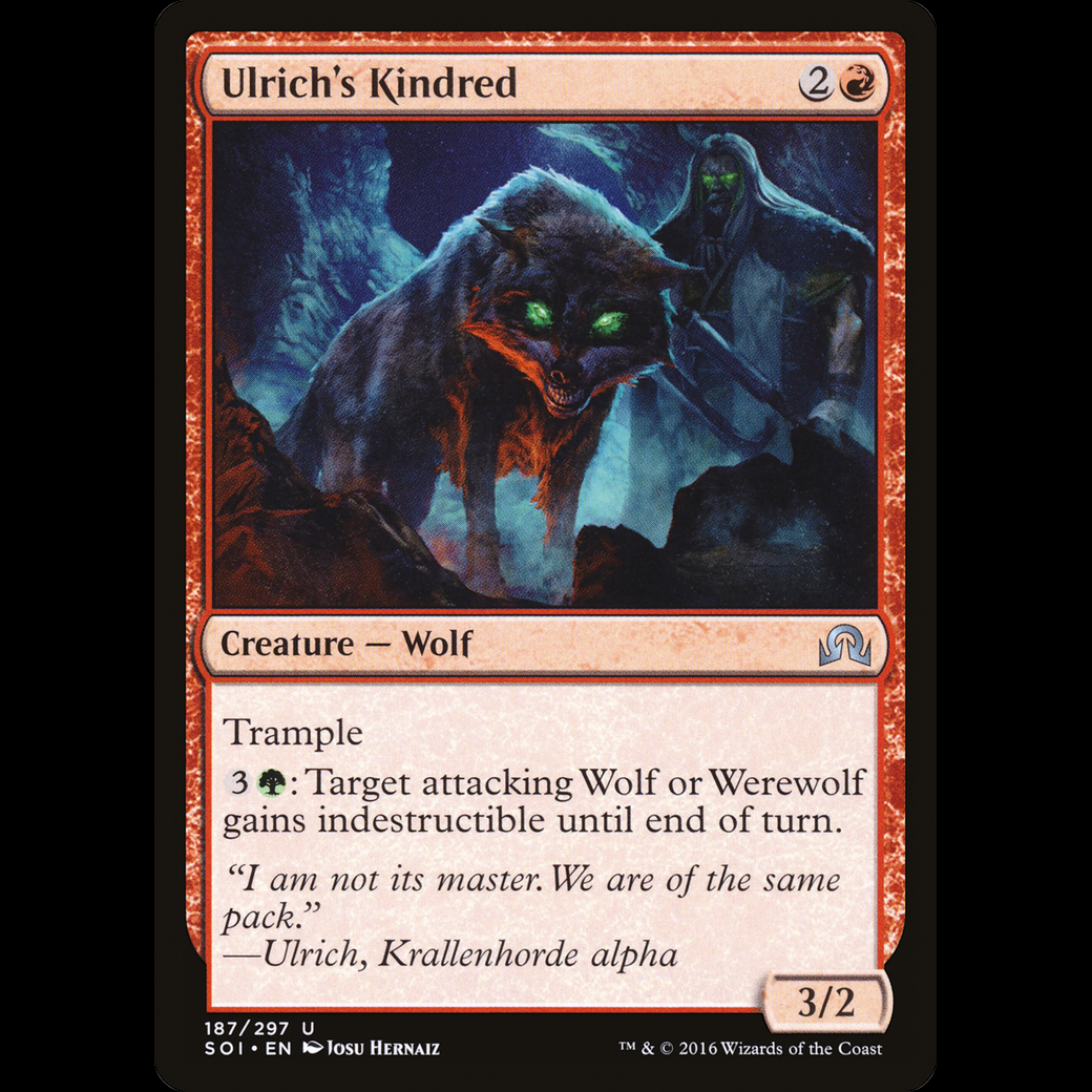 : Target attacking Wolf or Werewolf gains indestructible until end of turn.