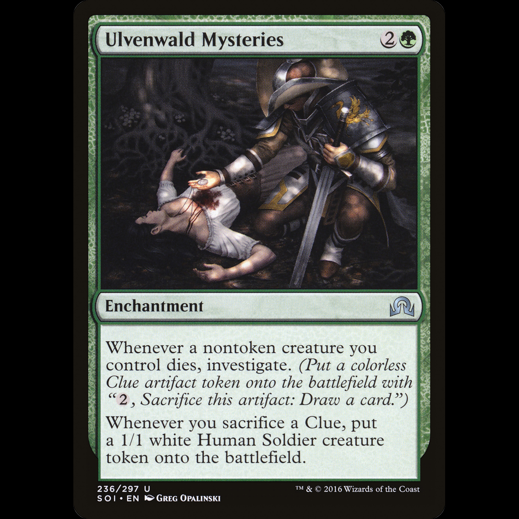 Whenever a nontoken creature you control dies, investigate. (Create a Clue token. It's an artifact with