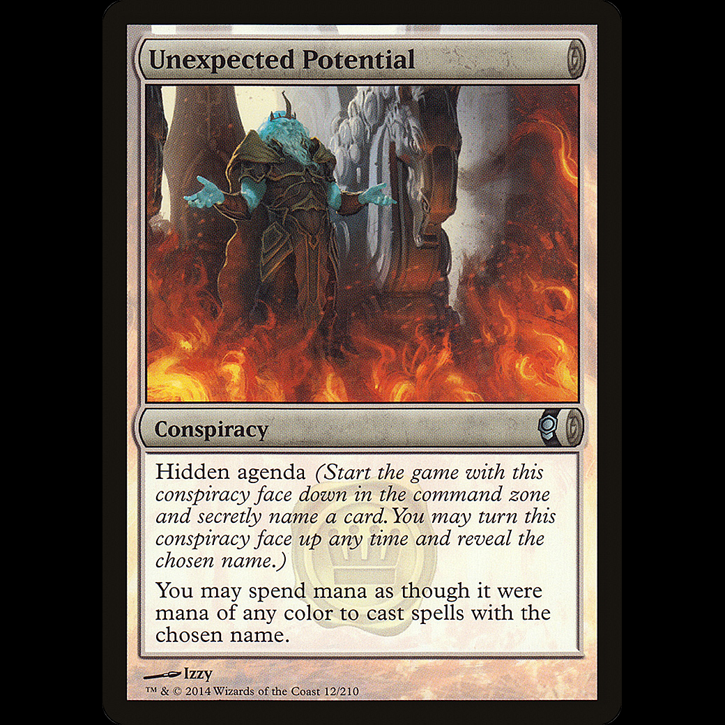Hidden agenda (Start the game with this conspiracy face down in the command zone and secretly choose a card name. You may turn this conspiracy face up any time and reveal that name.)