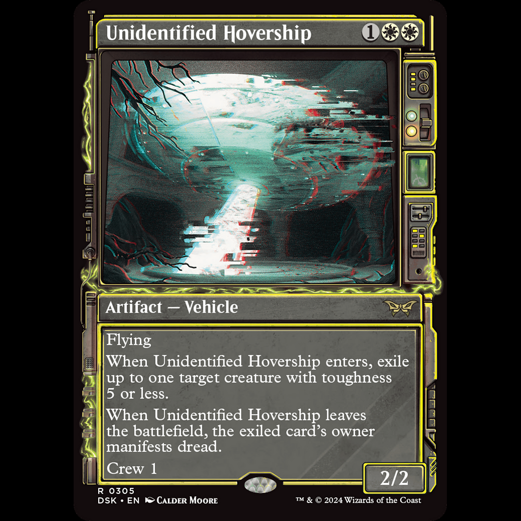 When Unidentified Hovership leaves the battlefield, the exiled card's owner manifests dread.