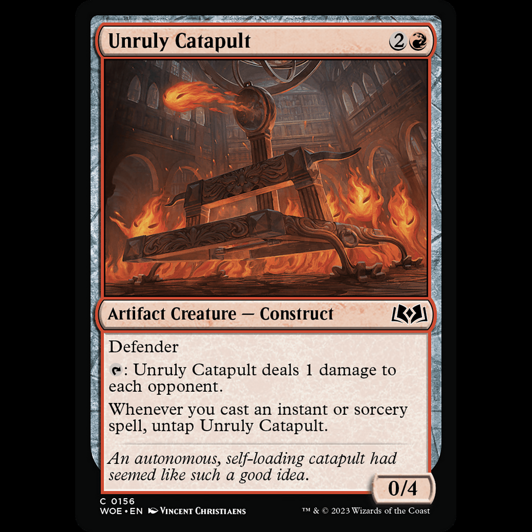 Whenever you cast an instant or sorcery spell, untap Unruly Catapult.