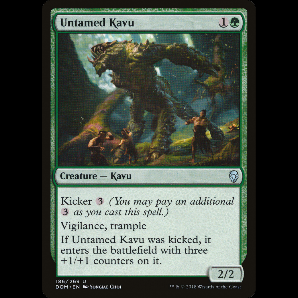 If Untamed Kavu was kicked, it enters the battlefield with three +1/+1 counters on it.