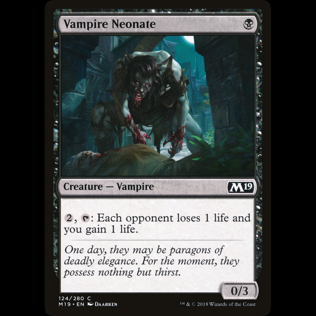 MTG Vampire Neonate Core Set 2019 m19#124, : Each opponent loses 1 life and you gain 1 life.