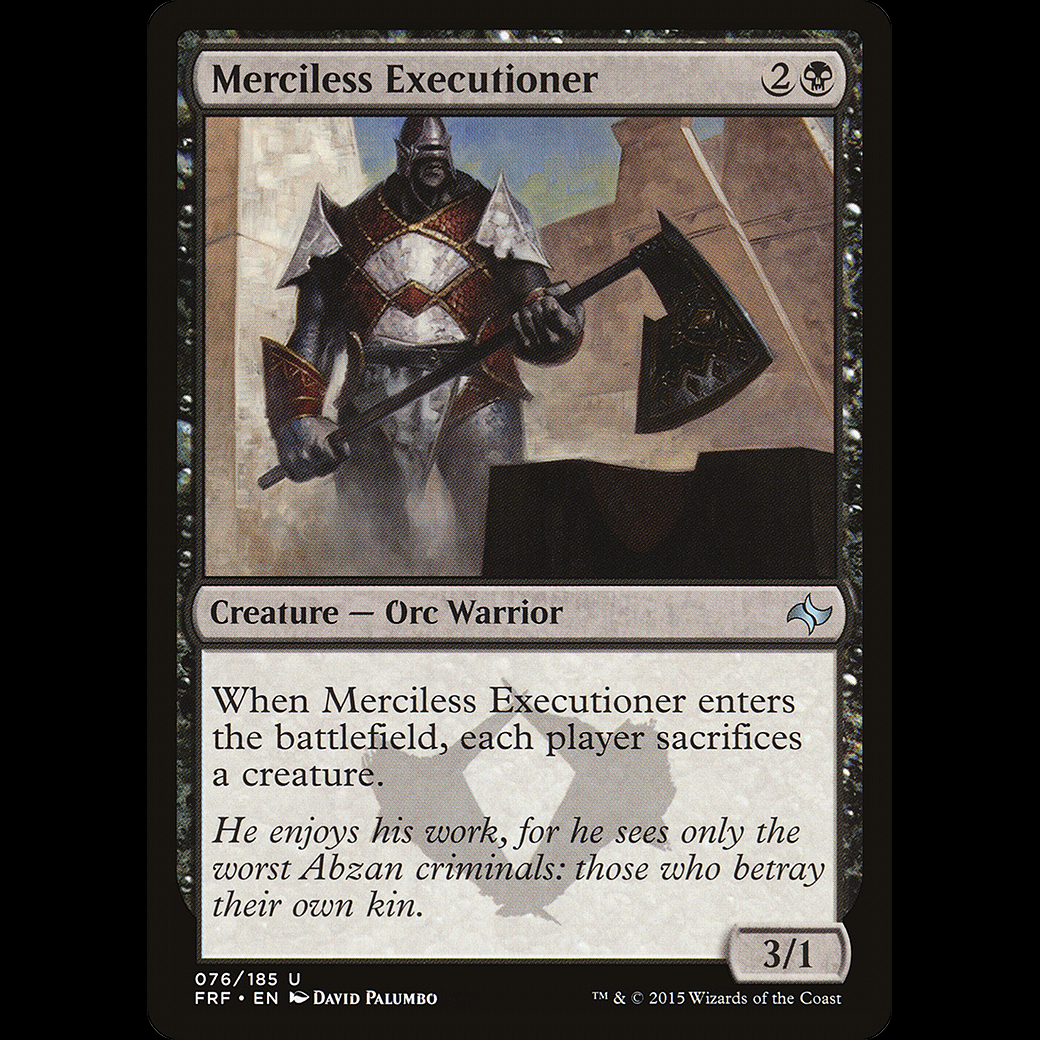 When Merciless Executioner enters the battlefield, each player sacrifices a creature.