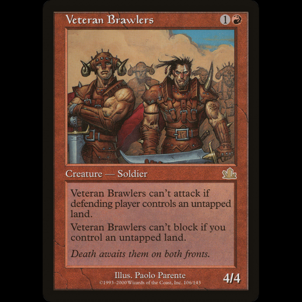 Veteran Brawlers can't attack if defending player controls an untapped land.