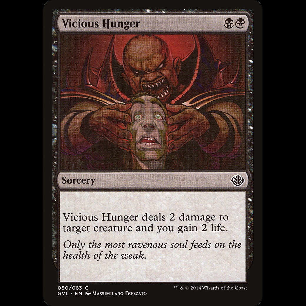 Vicious Hunger deals 2 damage to target creature and you gain 2 life.