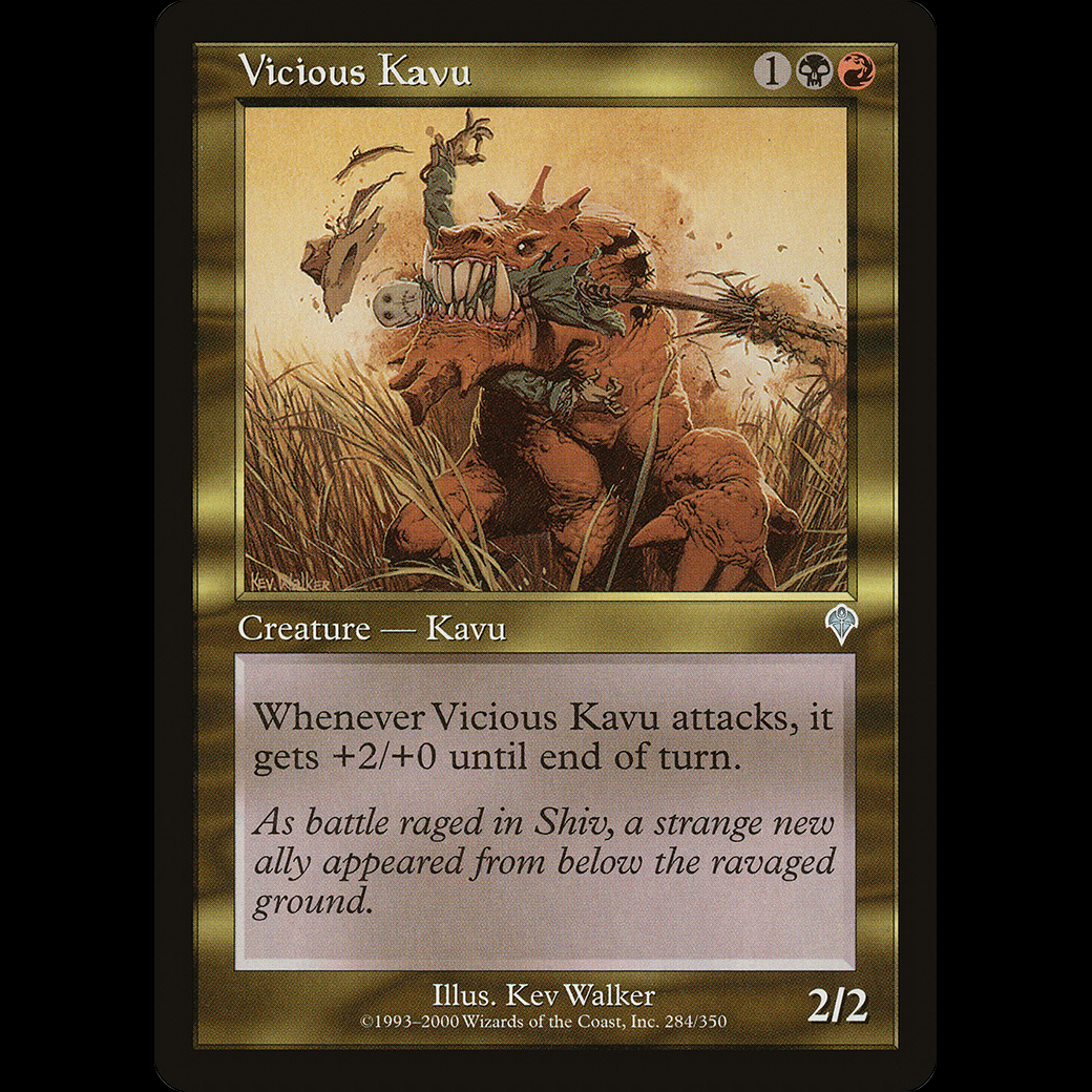 Whenever Vicious Kavu attacks, it gets +2/+0 until end of turn.