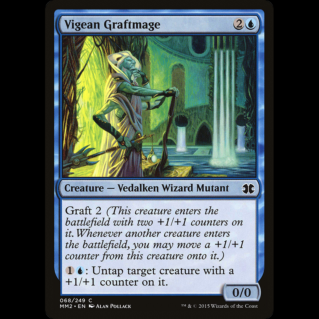 Graft 2 (This creature enters the battlefield with two +1/+1 counters on it. Whenever another creature enters the battlefield, you may move a +1/+1 counter from this creature onto it.)