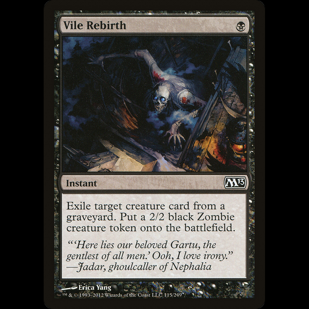 Exile target creature card from a graveyard. Create a 2/2 black Zombie creature token.
