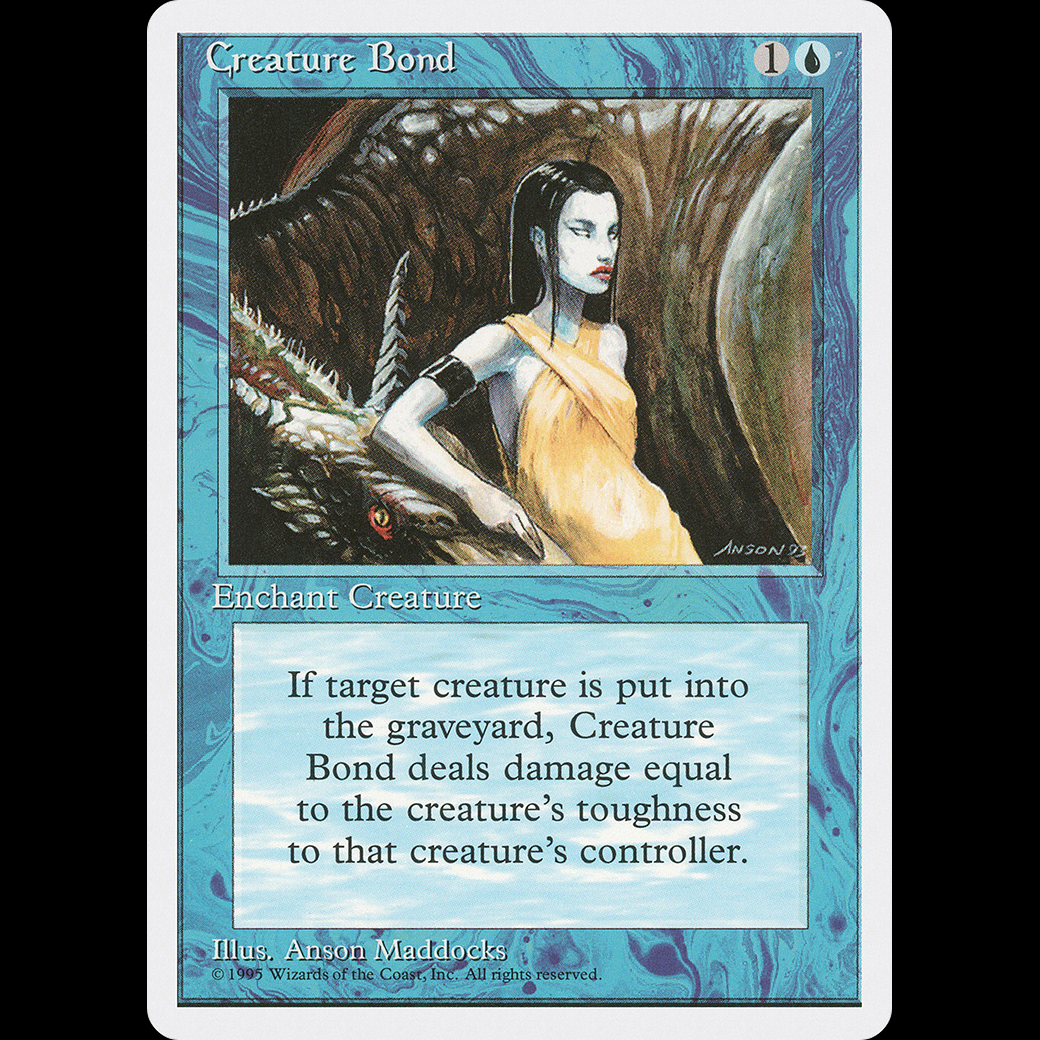 When enchanted creature dies, Creature Bond deals damage equal to that creature's toughness to the creature's controller.