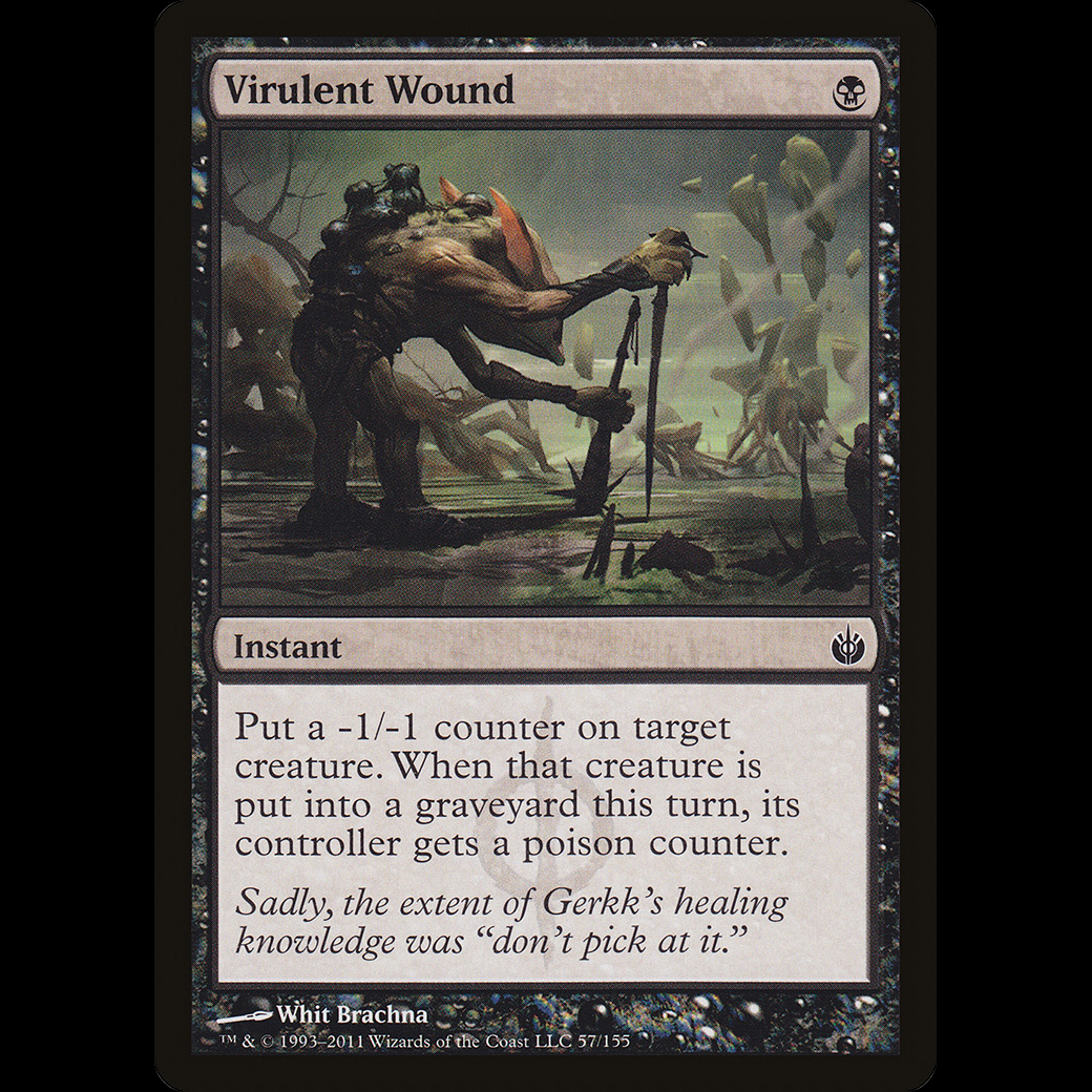 Put a -1/-1 counter on target creature. When that creature dies this turn, its controller gets a poison counter.