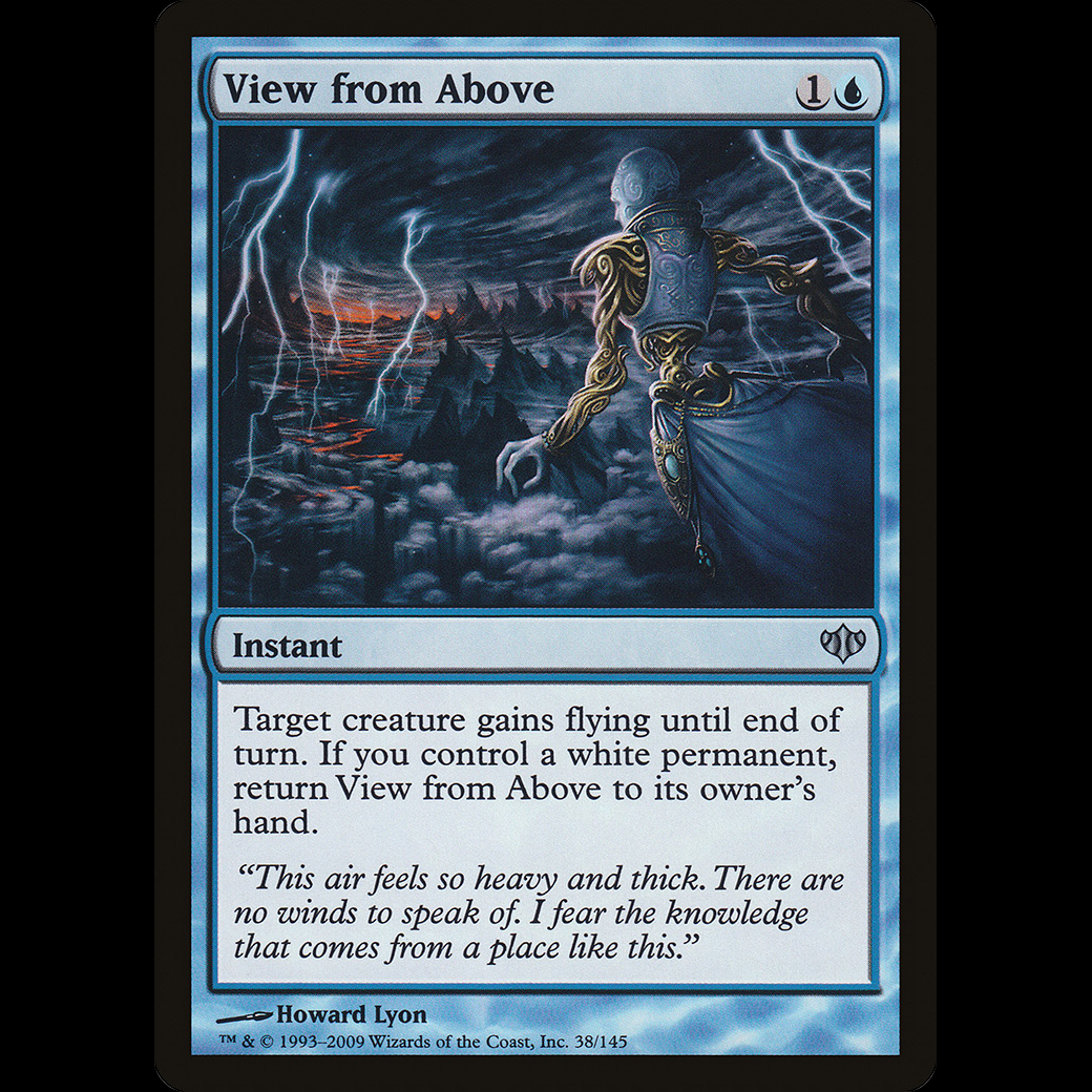 Target creature gains flying until end of turn. If you control a white permanent, return View from Above to its owner's hand.