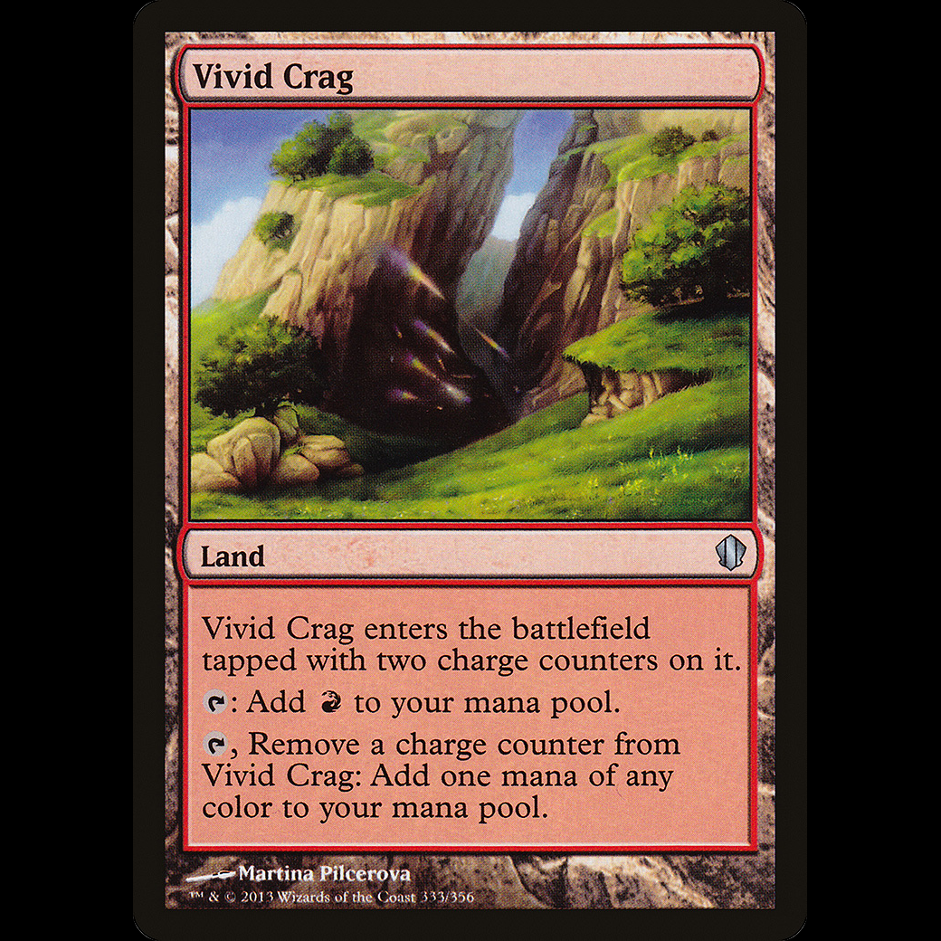 Vivid Crag enters the battlefield tapped with two charge counters on it.