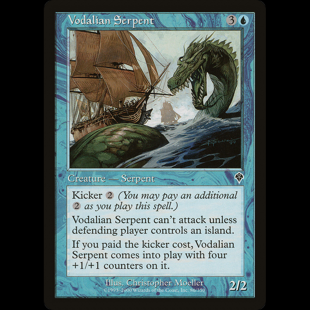 If Vodalian Serpent was kicked, it enters the battlefield with four +1/+1 counters on it.