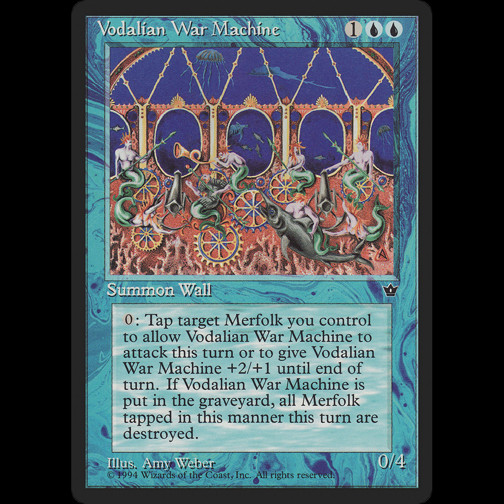 Tap an untapped Merfolk you control: Vodalian War Machine gets +2/+1 until end of turn.