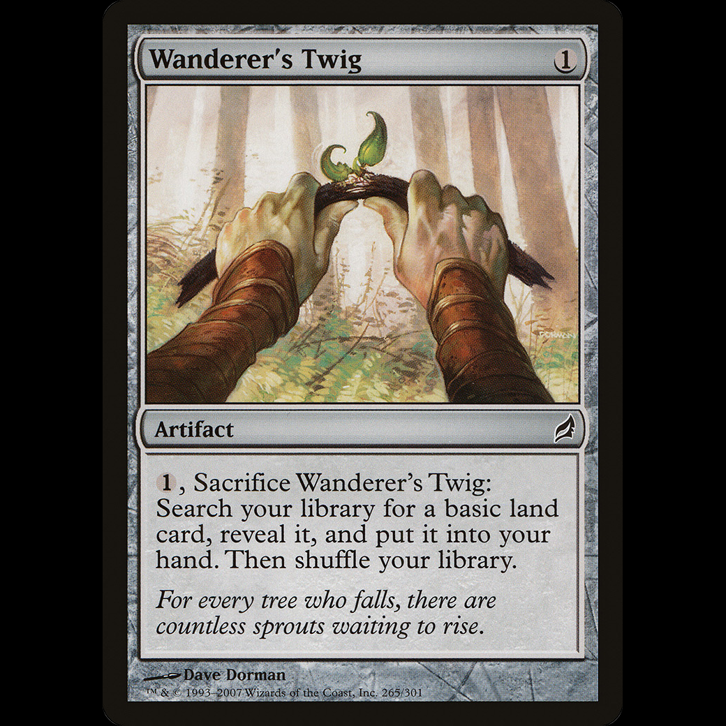 , Sacrifice Wanderer's Twig: Search your library for a basic land card, reveal it, put it into your hand, then shuffle.