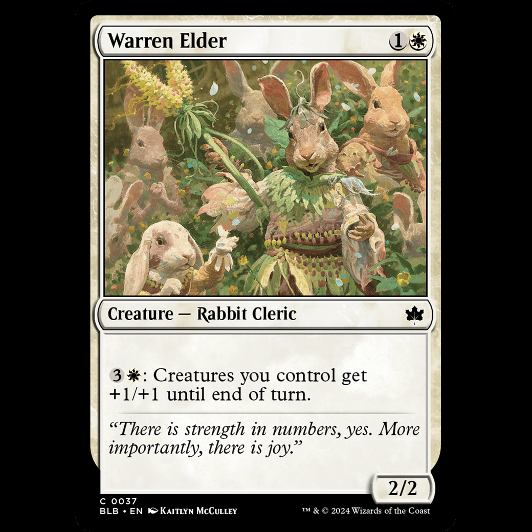 MTG Warren Elder Bloomburrow blb#37: Creatures you control get +1/+1 until end of turn.