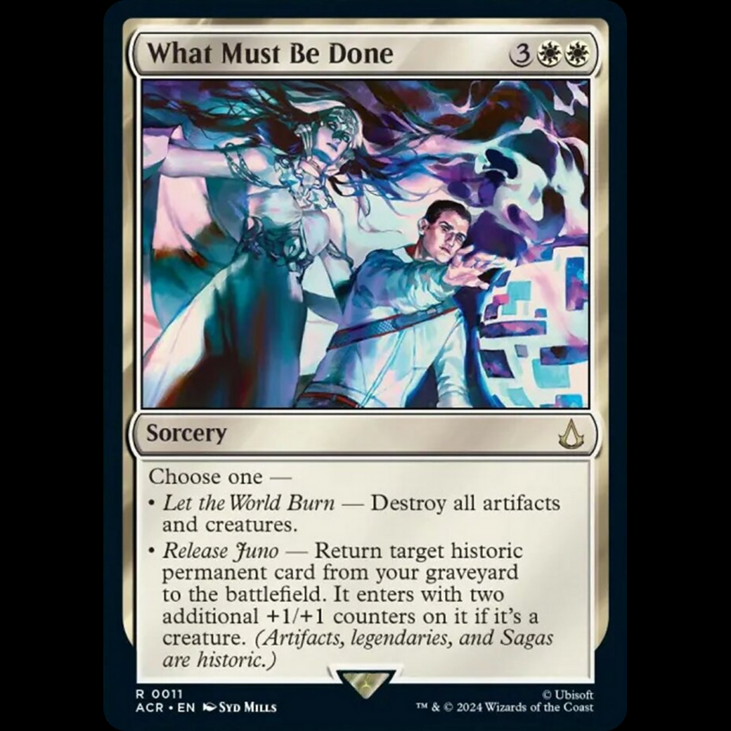 • Release Juno — Return target historic permanent card from your graveyard to the battlefield. It enters with two additional +1/+1 counters on it if it's a creature. (Artifacts, legendaries, and Sagas are historic.)