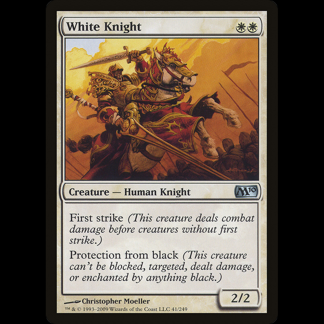 Protection from black (This creature can't be blocked, targeted, dealt damage, or enchanted by anything black.)