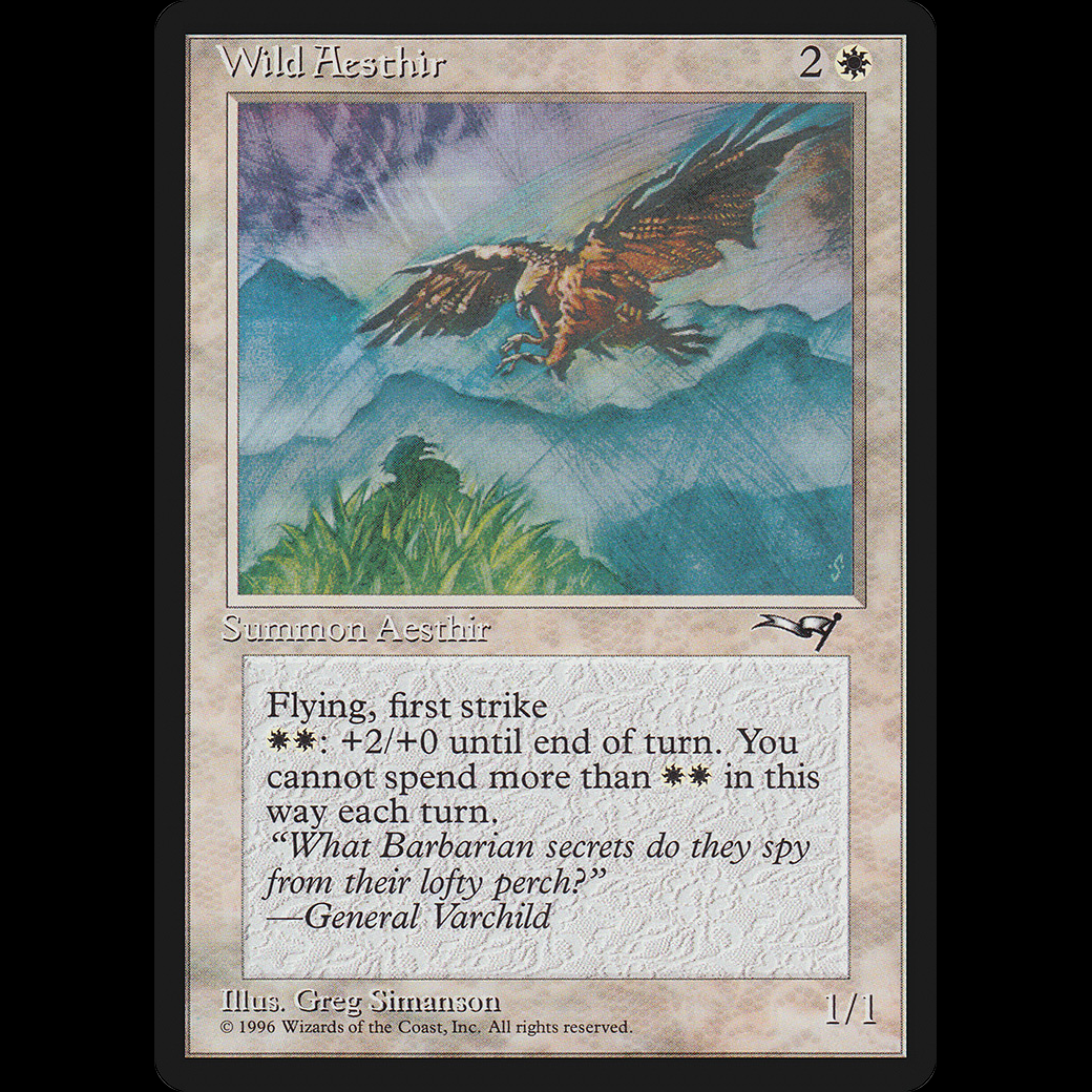 Flying, first strike : Wild Aesthir gets +2/+0 until end of turn. Activate only once each turn.