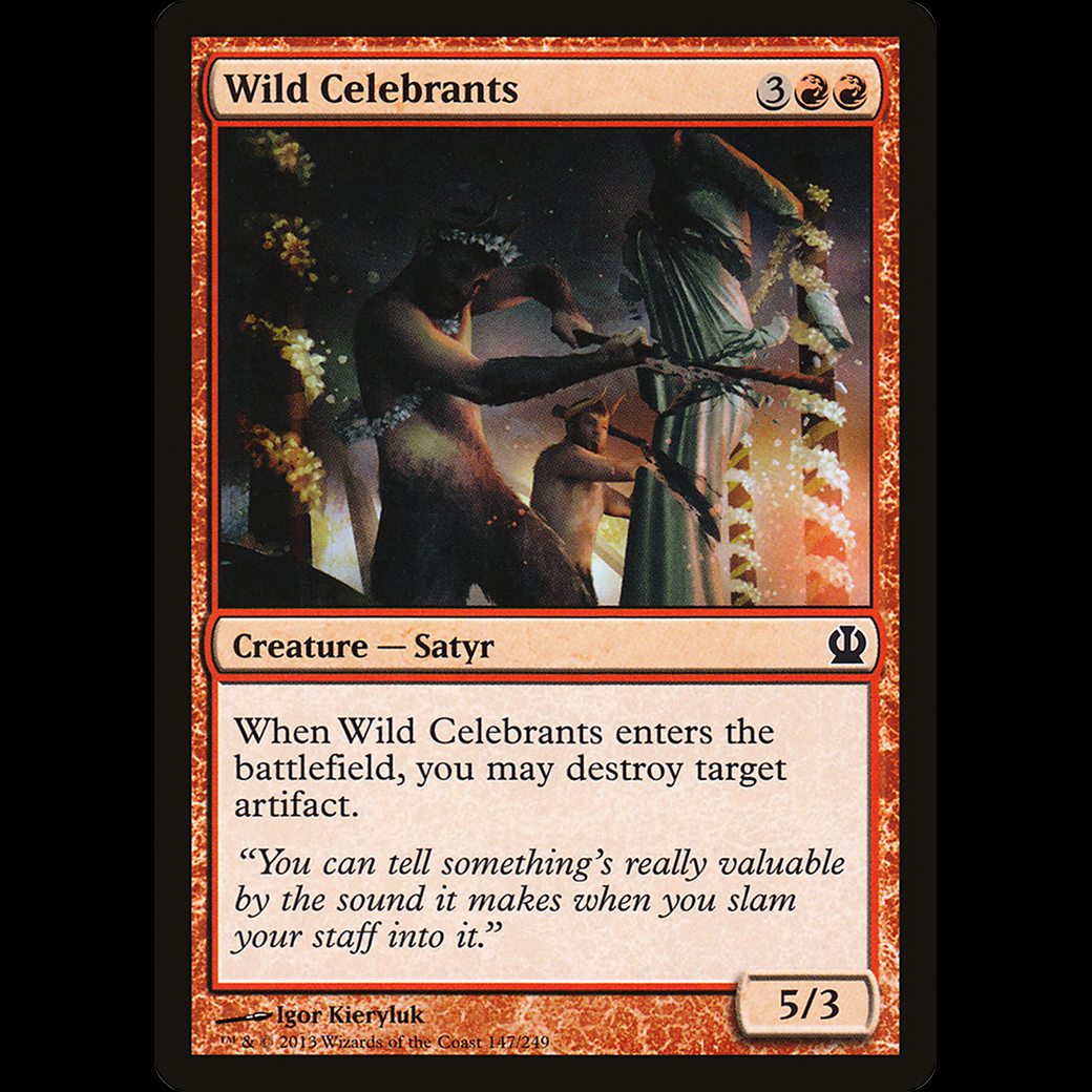 When Wild Celebrants enters the battlefield, you may destroy target artifact.