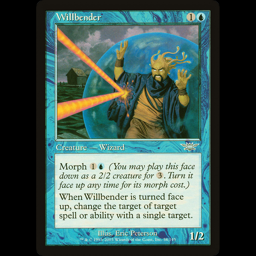 When Willbender is turned face up, change the target of target spell or ability with a single target.