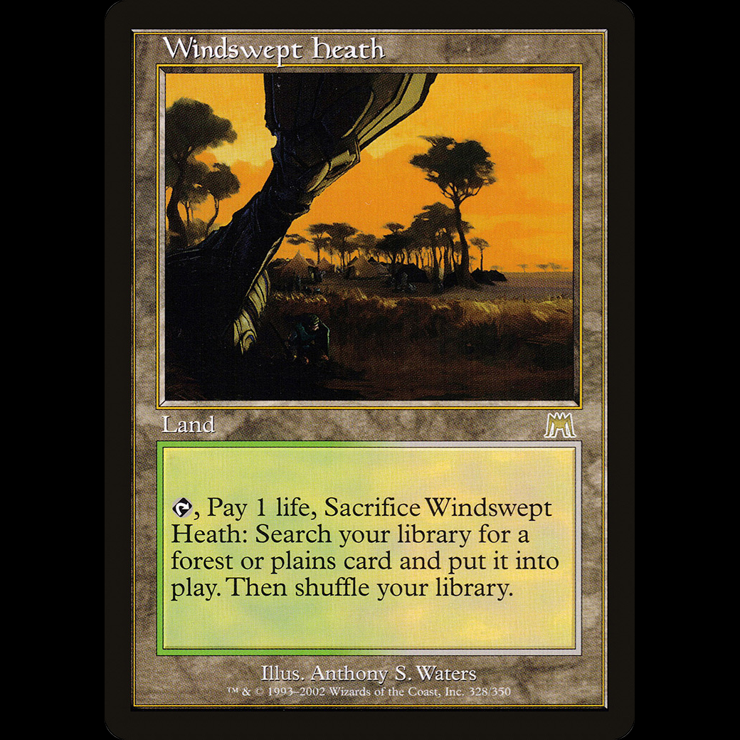 , Pay 1 life, Sacrifice this land: Search your library for a Forest or Plains card, put it onto the battlefield, then shuffle.