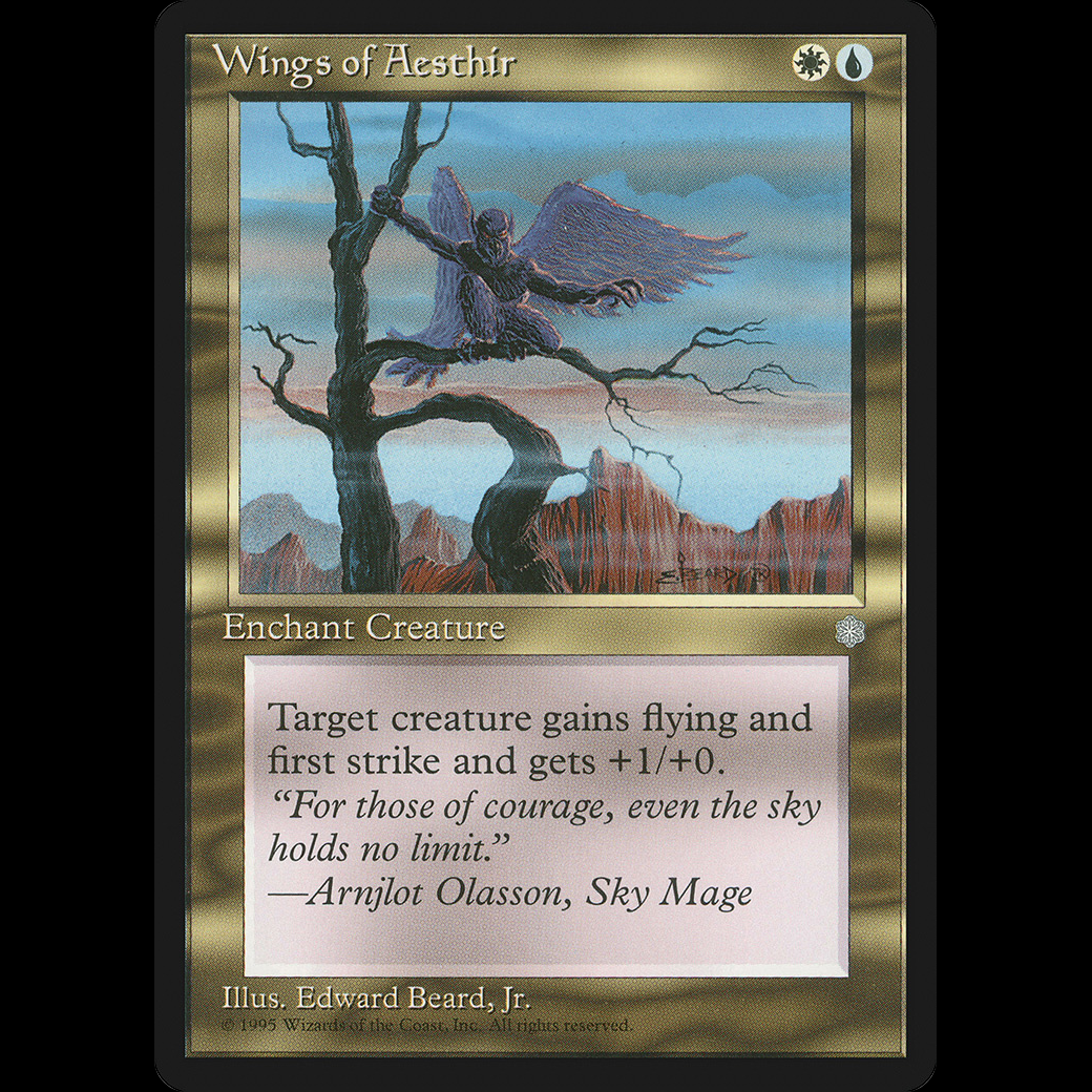 Enchanted creature gets +1/+0 and has flying and first strike.