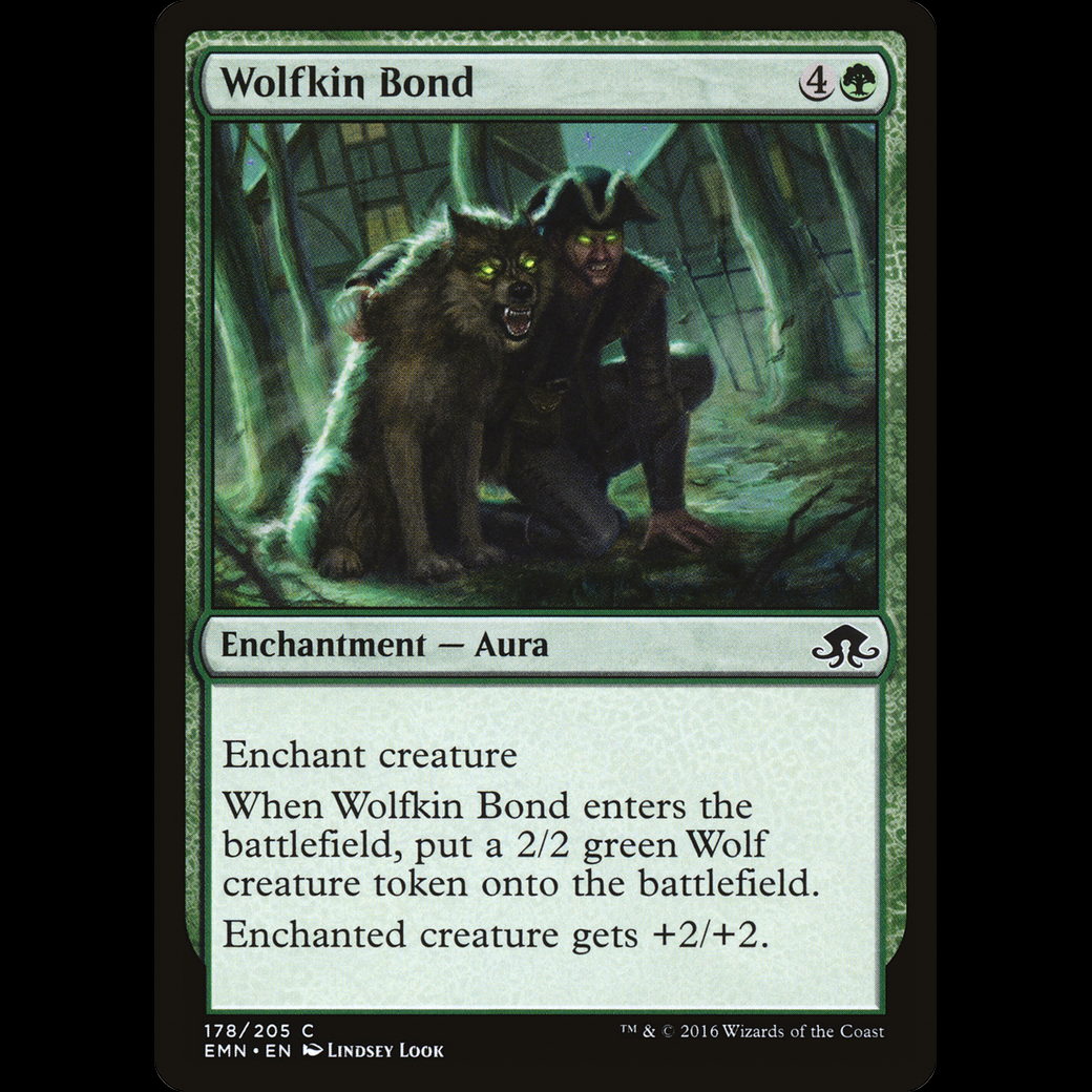When Wolfkin Bond enters the battlefield, create a 2/2 green Wolf creature token.