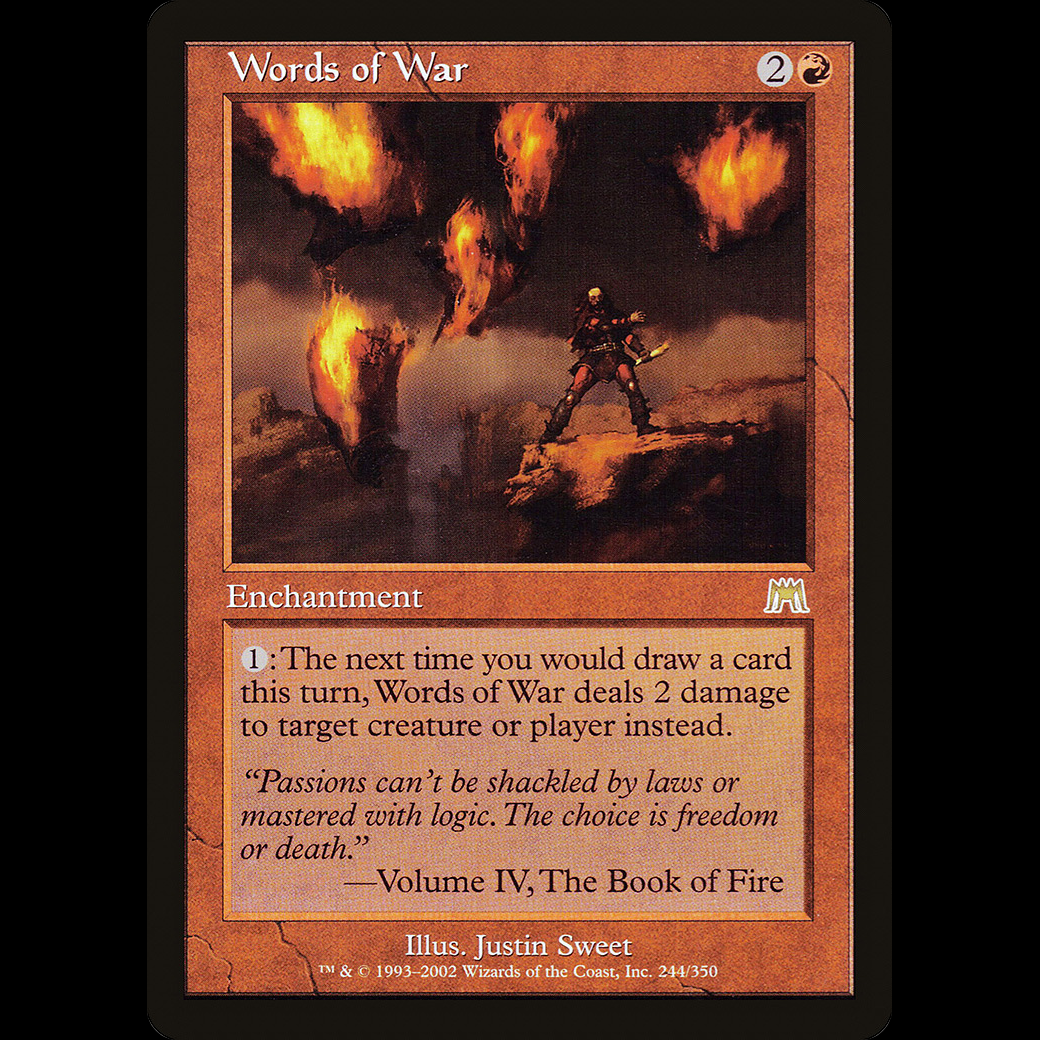 : The next time you would draw a card this turn, Words of War deals 2 damage to any target instead.