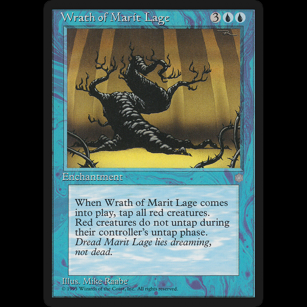 When Wrath of Marit Lage enters the battlefield, tap all red creatures.