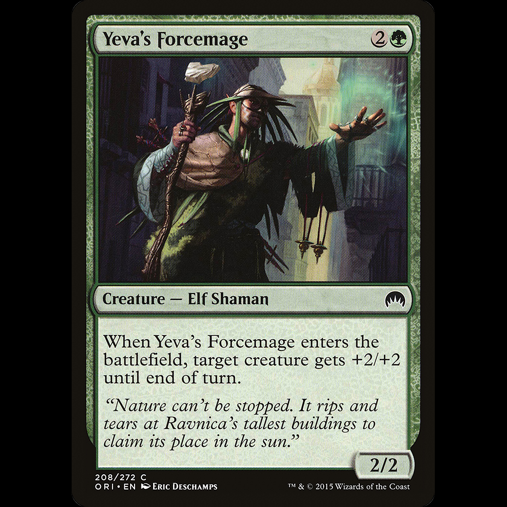When Yeva's Forcemage enters the battlefield, target creature gets +2/+2 until end of turn.