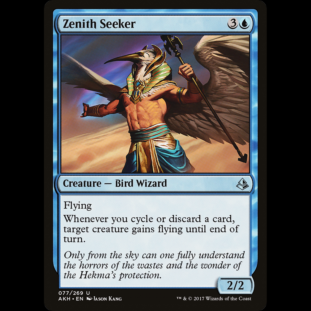 Whenever you cycle or discard a card, target creature gains flying until end of turn.