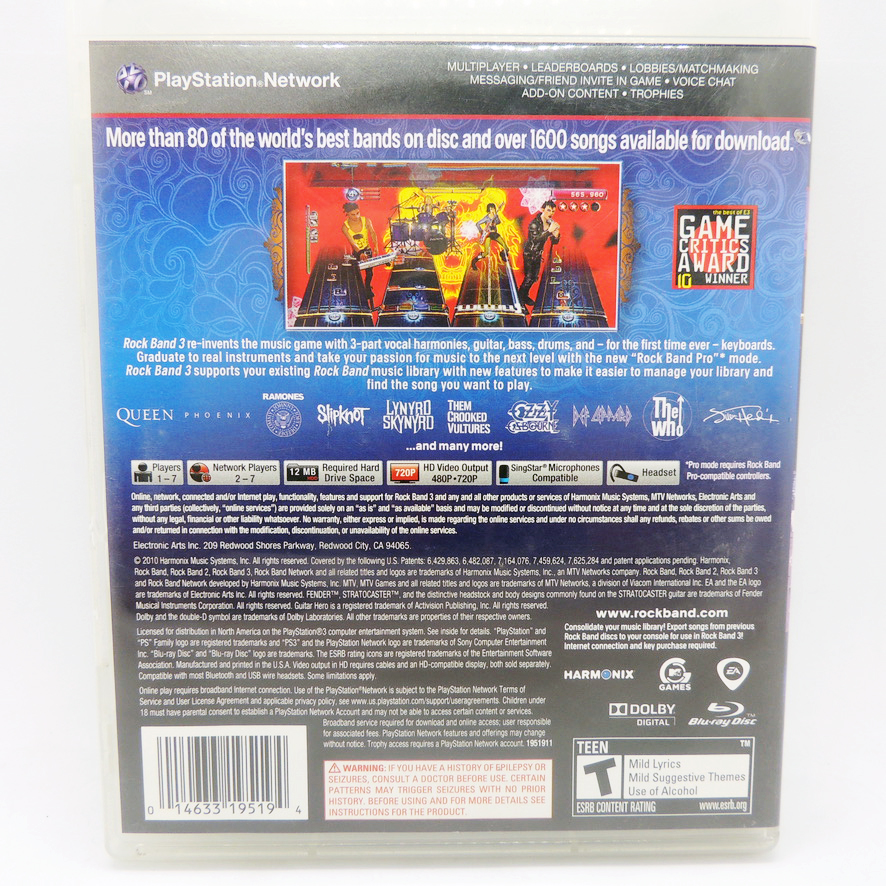 Rock Band 3 Harmonix Sony Play Station 3 PS3 Video Juego Colección