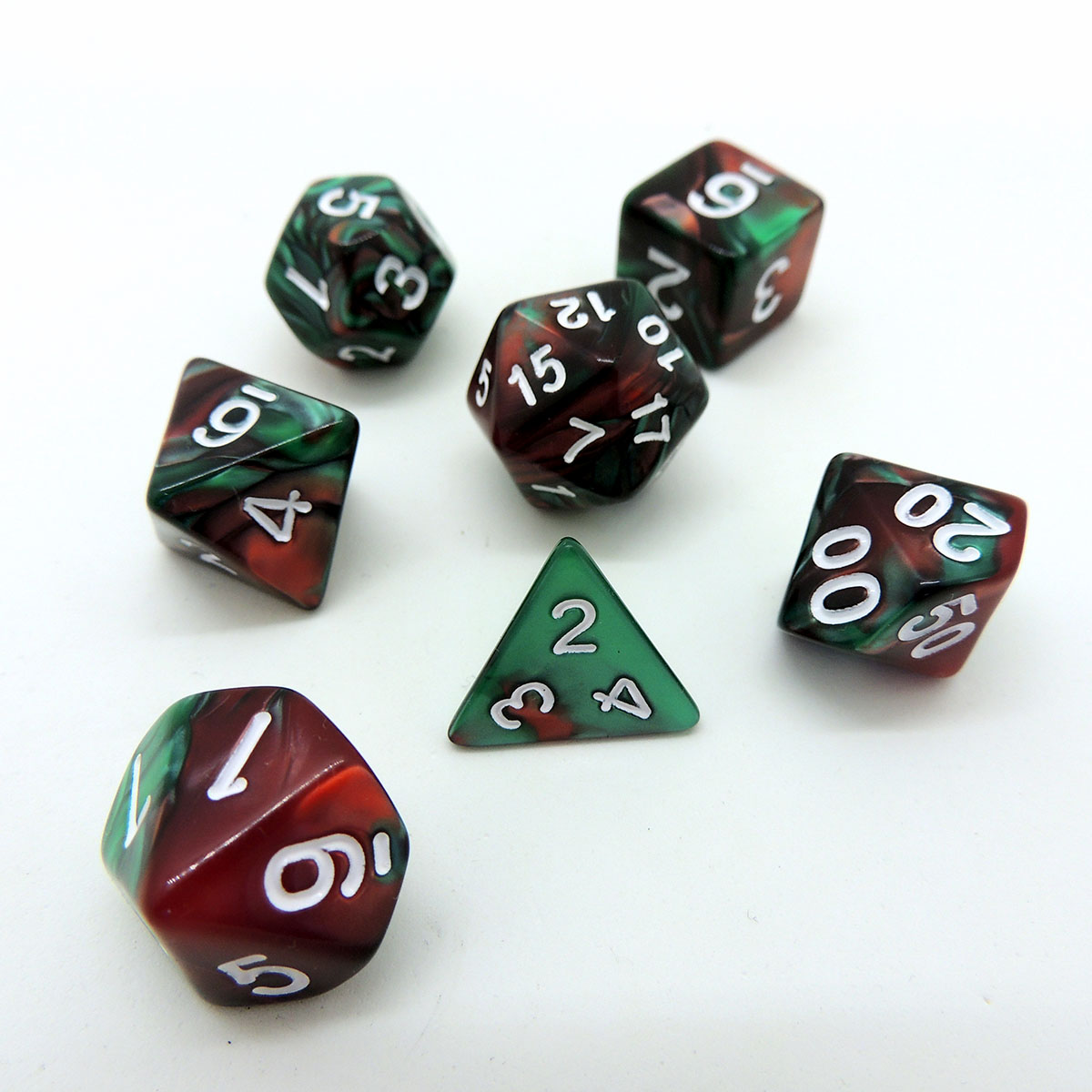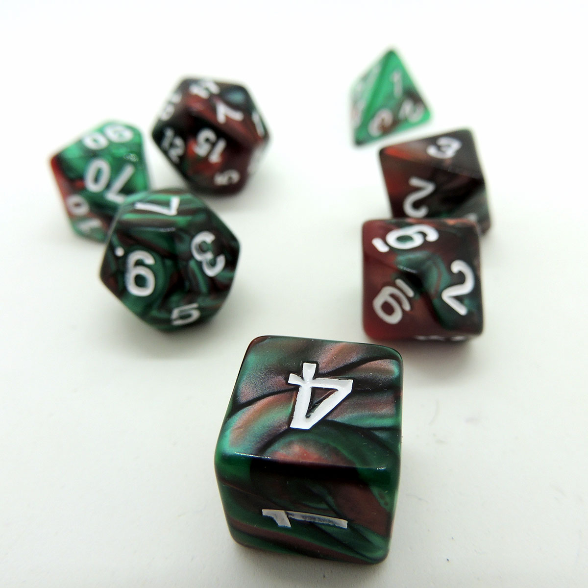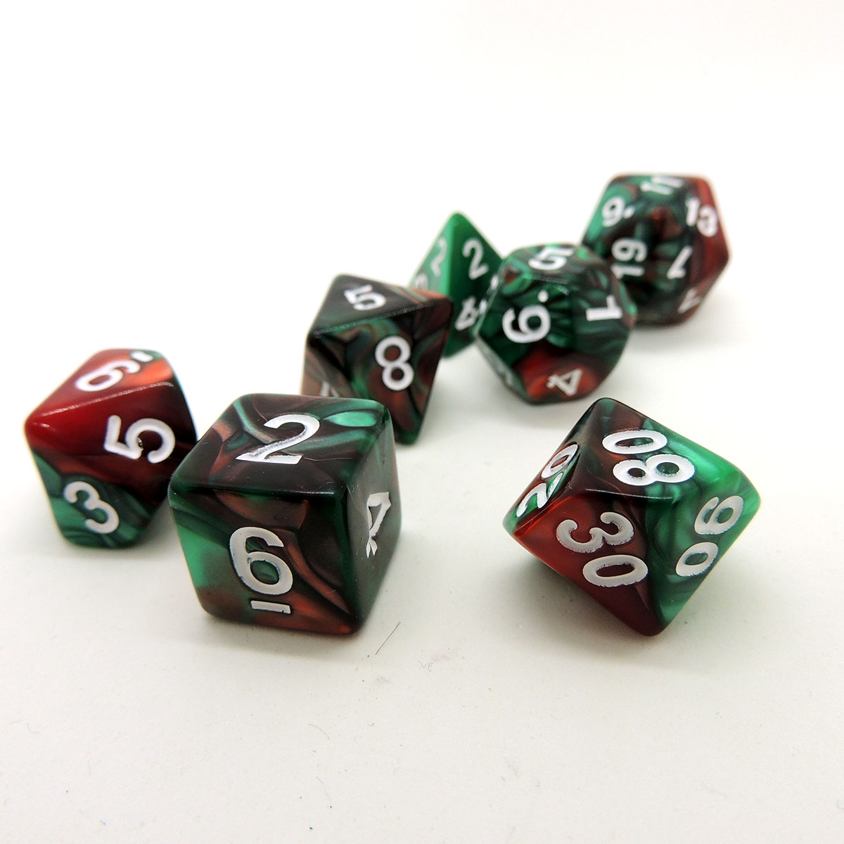 Set de 7 Dados para Rol D7 Verde Rojo MTG