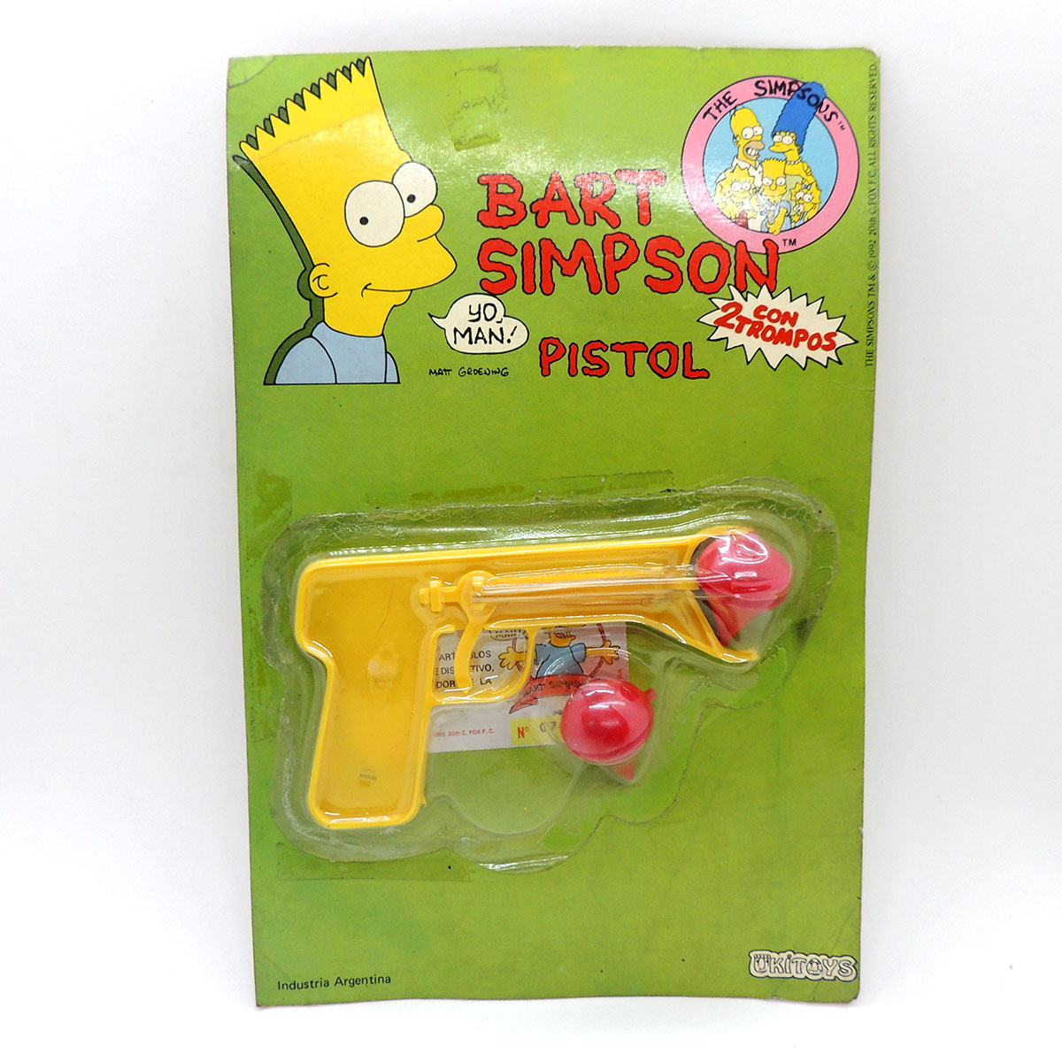 Simpsons Bart Pistol Con 2 Trompos Amarilla 1992 Ukitoys