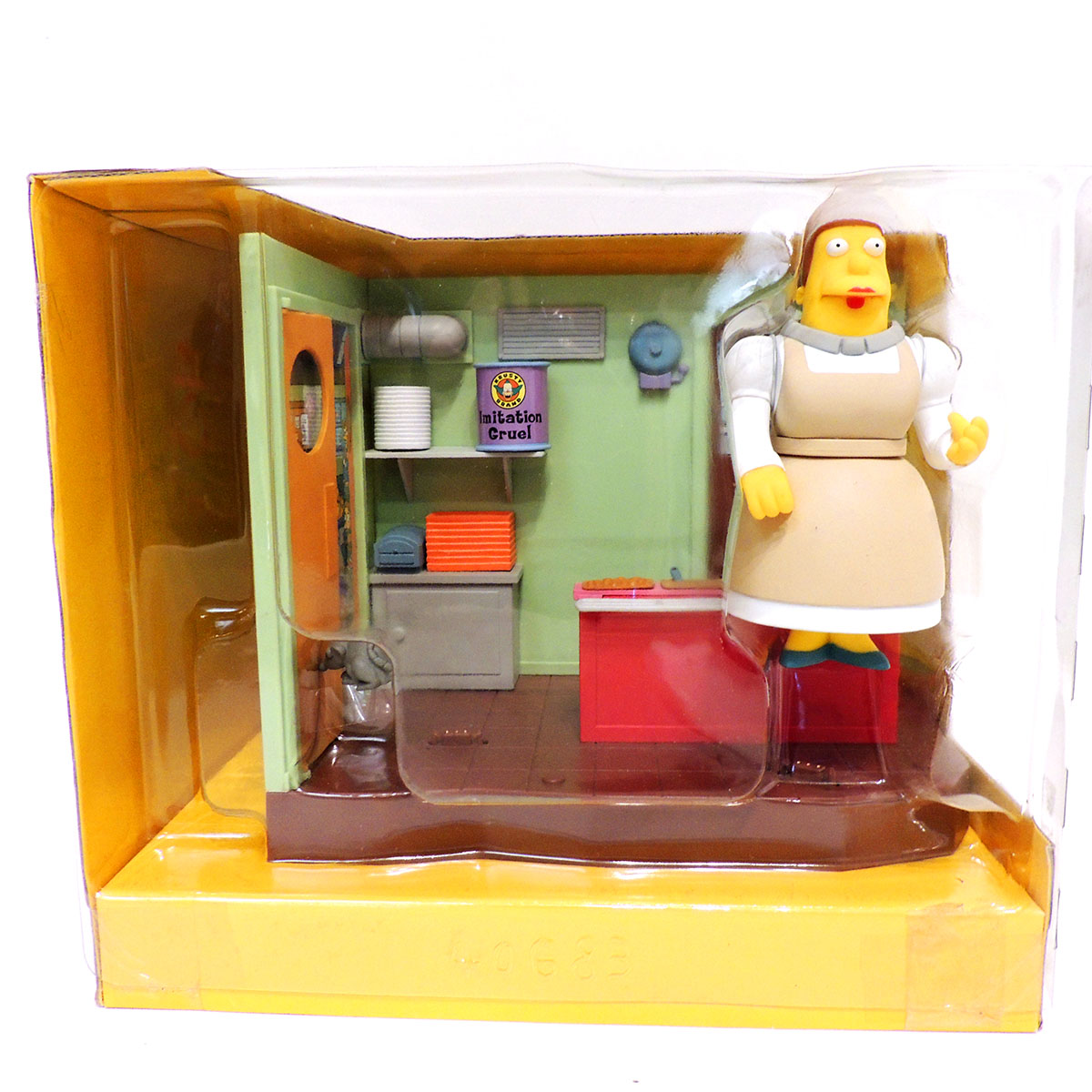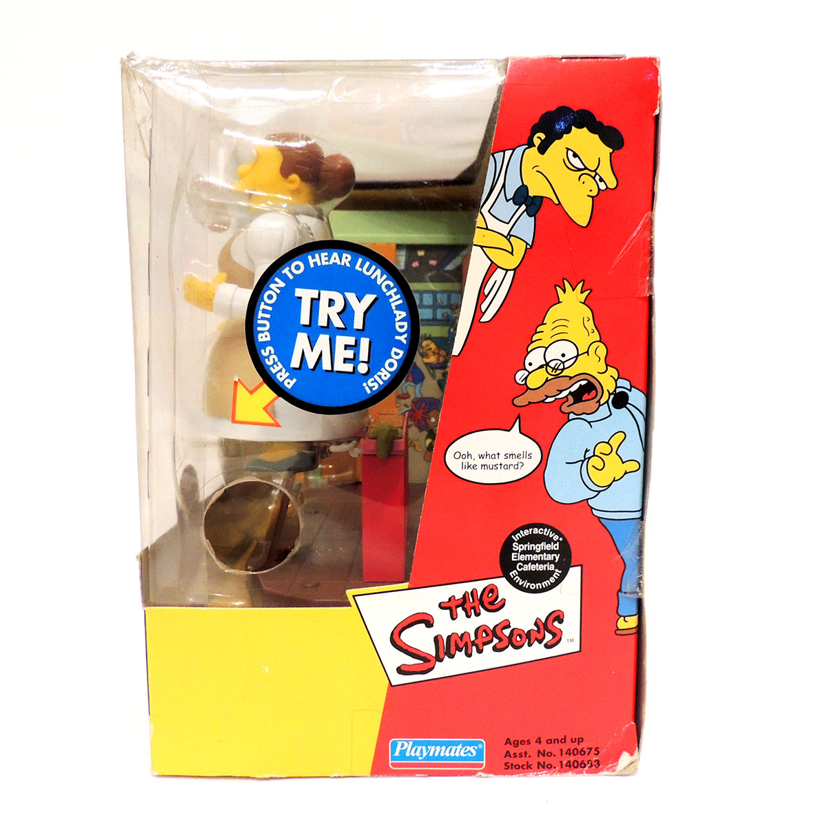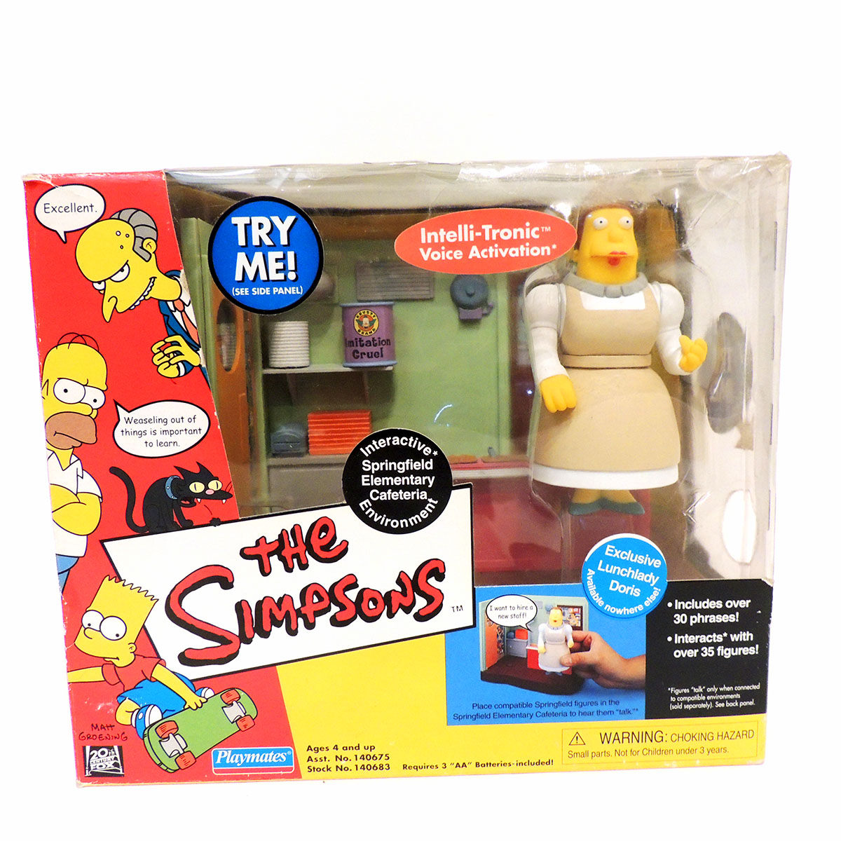 Simpsons Playset Lunchlady Doris Cocinera Exclusive Playmates 00 Pilas de fabrica gastadas.