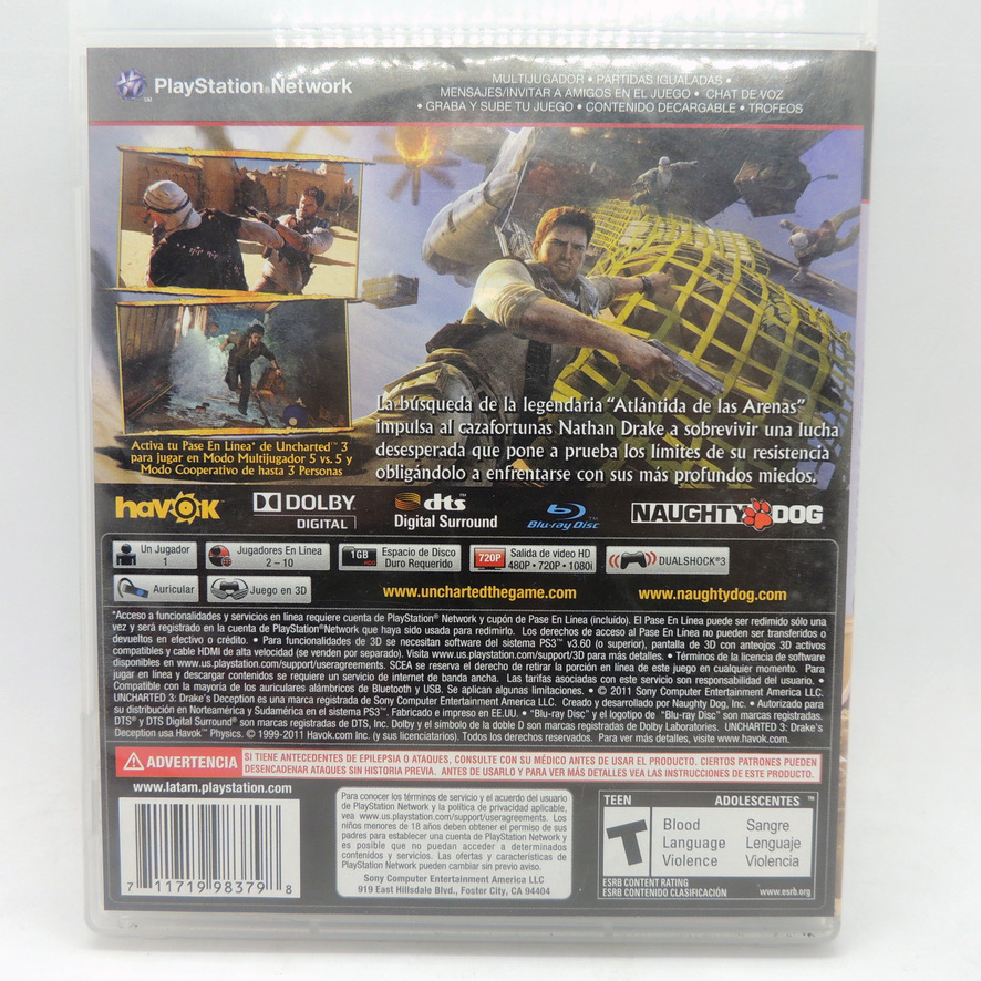 Uncharted 3 Drake’s Deception Naughty Dog Sony Play Station 3 PS3 Video Juego Colección